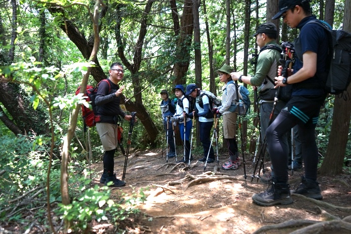 机上講習で、トレッキングポールの扱い方や基本を学び、近くのトレイルで実践します。ガイドと一緒に山を歩くことで、効率的な使い方を知るいい機会になります。