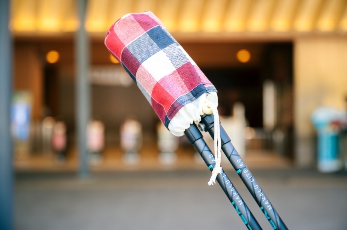 下山後、トレッキングポールは先端に土や泥が付いているので、ペットボトルホルダーやイスの脚に被せるカバーなどを使うと汚れを気にせず持ち運べます。