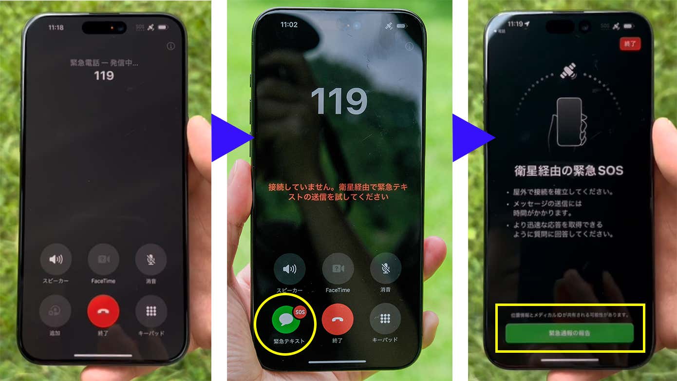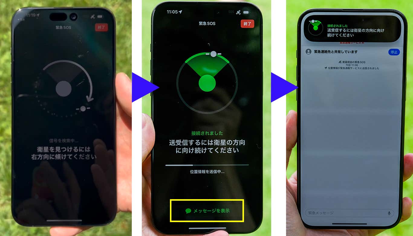 「衛星経由の緊急 SOS」 はデモを試すこともできる!