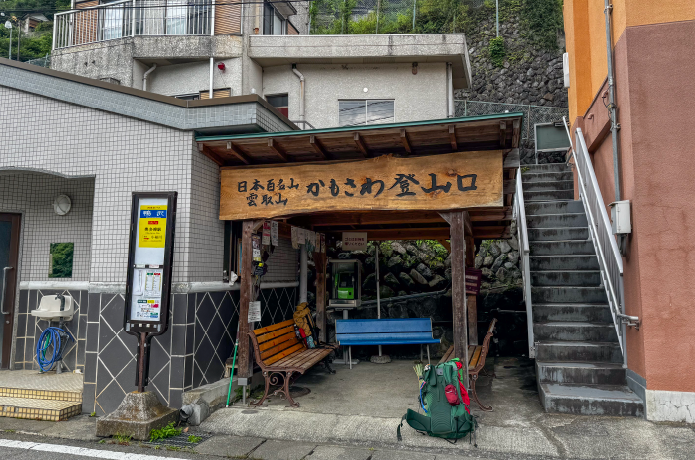 登り始めは、奥多摩湖畔にある鴨沢バス停から。バス停には、登山届を入れるポストやトイレなどが併設されています。