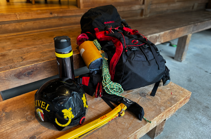 上高地から見た穂高岳に惚れて山を始めたという園部さん。その後、ブルワリーも山のそばにつくったものの、「最近は、なかなか登れていないんですよ(笑)」とのこと。そんな園部さんの山道具は、出番を待つかのように店内の片隅に置かれています。