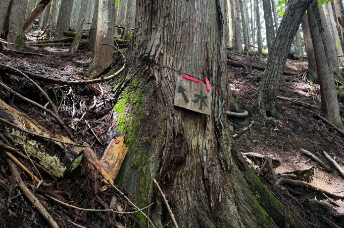 風呂岩(すいほろいわ)付近にある水場。冬場は付近の登山道を含めて凍結することがあり、チェーンスパイクや軽アイゼンを用意しておくと安全に通行することができます。