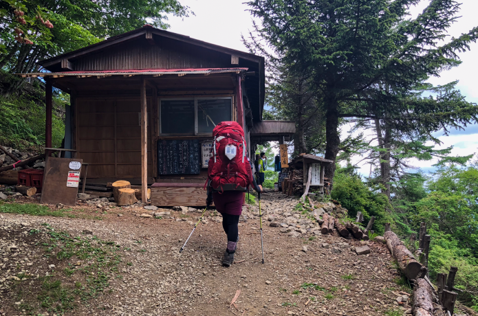 標高1,597m地点に位置する七ツ石小屋。小屋泊やテント泊もできるので、ここで泊まってのんびり過ごすのもおすすめ。