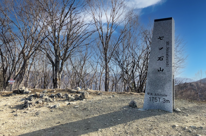 標高1,757m。雲取山へと続く尾根道の風景が美しい七ツ石山。山頂付近にある七ツ石神社には、狼の狛犬が祀られています。
