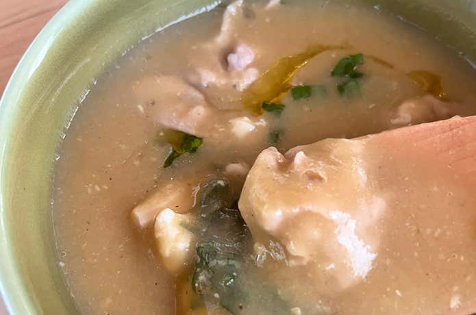実は先日、このメニューのベースとなった豚汁雑炊を食べさせていただきました。シンプルな見た目ながら、実に濃厚なスープなの、わかりますか?