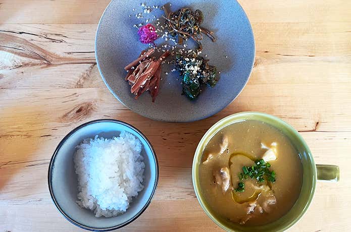 様々な野菜と贅沢な出汁、味噌で煮込まれたスープは深い味わいながら、ホッとする。