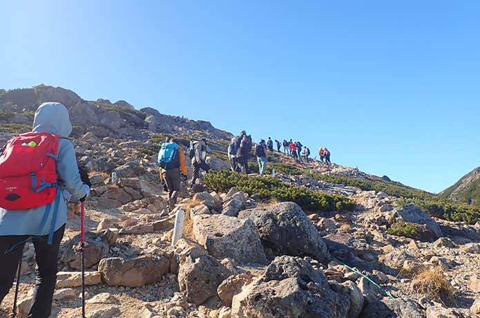 朝食を堪能したら、乗鞍岳へ。天気にも恵まれ、終始雲海を見ながらの登山を楽しみました。