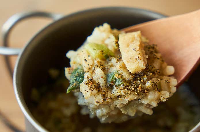 どの味も甲乙つけがたいメニューばかりではありますが、個人的なお気に入りがこの「山椒七味香る豚汁雑炊」。