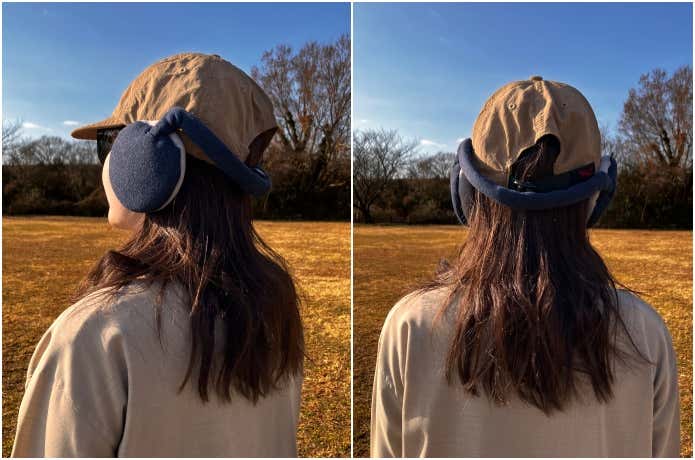 イヤーマフバンド単体だけでなく、キャップの上からも使用可能。状況に応じてキャップと併用できる点も使い勝手の良さと言えます。