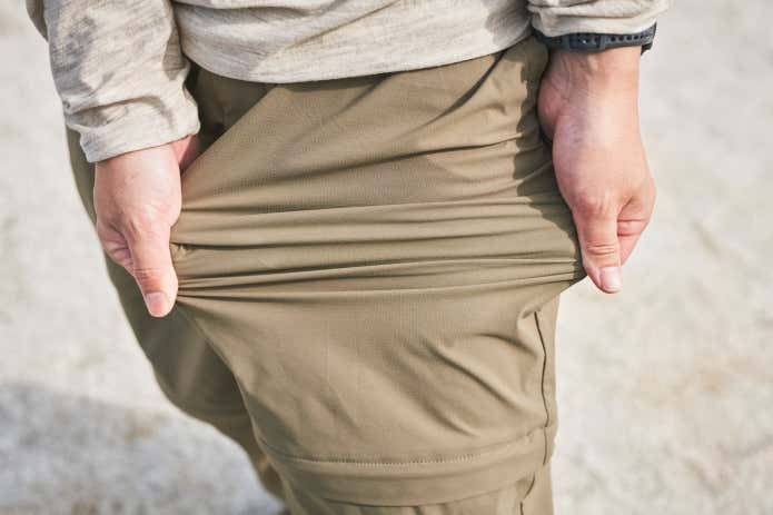 例えば、夏の行動中はショートパンツで快適に行動し、停滞時は寒さ対策のためにロングにしたり、藪などの足を守りたい時に裾を足したりして使います。