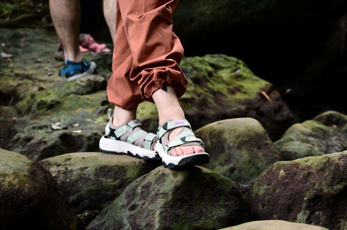 足の露出が多くなる分、風通しが良く快適です。しかし、登山シューズやブーツに比べると防寒性や外的要因による怪我のリスクへの注意は、より必要になってきます。