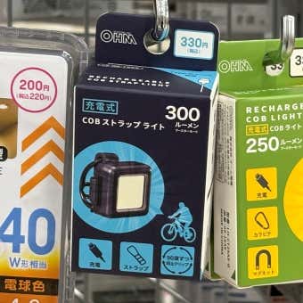 ダイソー「COBライト」の製造元である日本の照明機器の老舗メーカー「オーム電機」には、COBライトのバリエーションが豊富(生産は中国)。ルーメン数が高く、保護等級IPX4のモデルや栓抜き・ドライバー・レンチが付いたマルチツールのようなモデルもあります。ダイソーと同じ価格とはいきませんが、要チェックです!