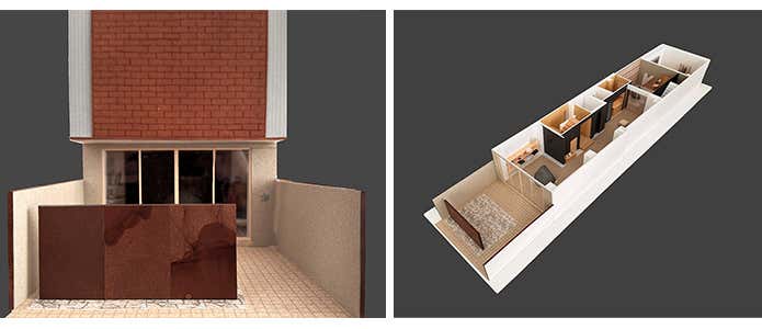 - 前庭〜中庭まで石を敷き詰め、風が抜ける設計