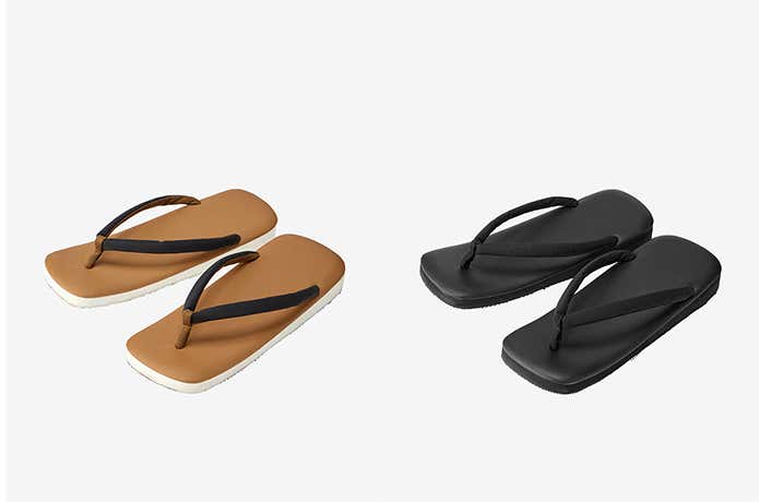 鼻緒にはアパレル生産で出た残布を活用。足にやさしい設計とともに、サステナブルな視点も取り込んでいます。履き心地、美しさ、そしてストーリー。すべてが詰まった一足は「Goldwin Kyoto」での限定販売です。