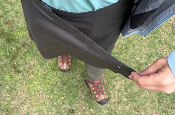 レインスカートは、マジックテープやスナップボタンでウエストを調整するタイプが一般的。ウエスト全体にゴムが入ってジャストフィットさせる設計ではないので、自身のウエストサイズに合わせて調整できるかをしっかり確認しましょう。