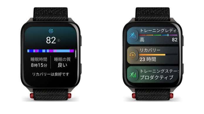 また、日常生活でも心拍数、呼吸数、ストレスレベル、血中酸素トラッキング、睡眠モニタリングなどで、健康状態を可視化。睡眠機能は特に充実していて、最適な睡眠時間の提案で睡眠改善をサポートする「睡眠コーチ」、睡眠状態が数値などでわかる「睡眠スコア」、心拍数から自律神経の状態がわかる「HRVステータス」などで、体の状態を把握することができます。