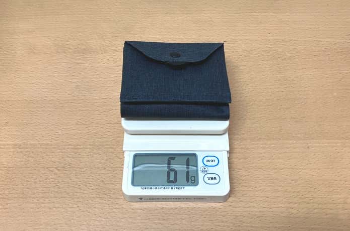 UL系の超軽量財布と比べると、実測で61gと軽いわけではなく、カラビナループなどもついていません。自分でハトメ加工をするなどカスタムして使いやすくするのも楽しいですね。