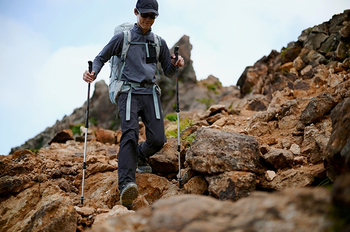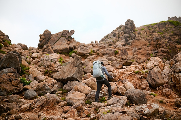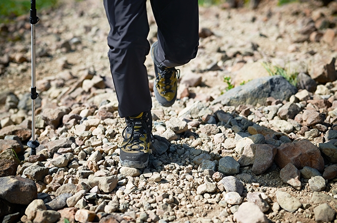 「GK8X_FFF」が誇る確かなグリップ力を、登山のあらゆるシーンで検証。グリップ力が信頼できると、こんなにも歩きやすいものかと感動しました。