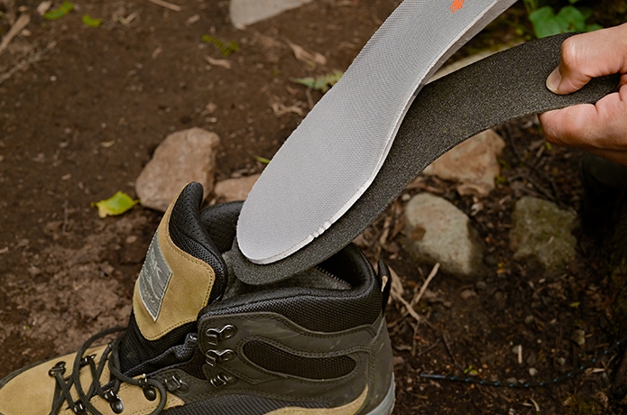 靴の中でゆるさを感じる場合には、付属のフルインソールで微調整が可能です。たった1枚足すだけでもフィット感を高められます。