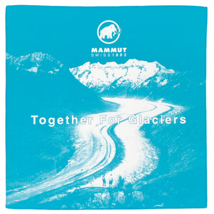 アレッチ氷河をモチーフとし、「Together For Glaciers」のメッセージがプリントされた1枚は山コーデの着こなしのアクセントになり、顔まわりに巻けば紫外線対策にもうってつけ。