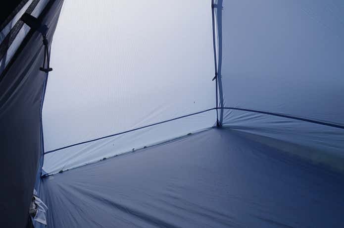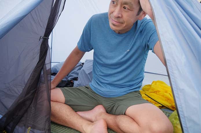 前室が備わっていることでの室内空間の拡大と、本体出入口のメッシュパネルの換気効果は高いようです。とはいえ、本体素材はナイロン シリコン/PUコーティング製なので、状況によっては結露します。結露が発生したときのために、寝袋を濡らさない対策、結露を吸い取るタオル等の用意は必須です。