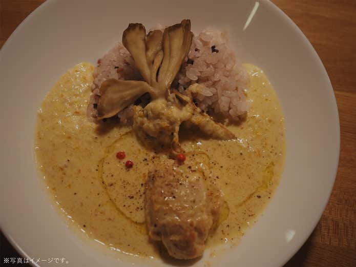 - メニュー: 「鶏と舞茸のシェリー煮込み」(税込2,500円)