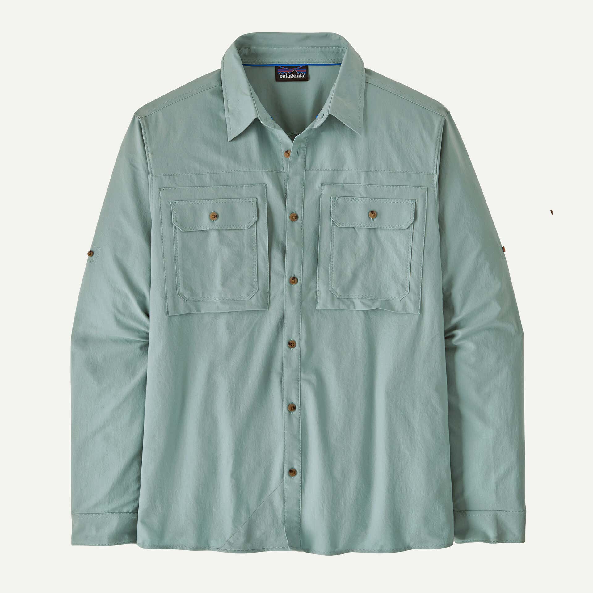 パタゴニアのフィッシングラインらしい大型ポケットやレンズクリーナーといった装備が、山歩きにもそのまま役立ちます。稜線での紫外線対策、岩場やクサリ場での動きやすさ、使い勝手に優れる細部と、登山に必要な性能が揃った万能シャツです。