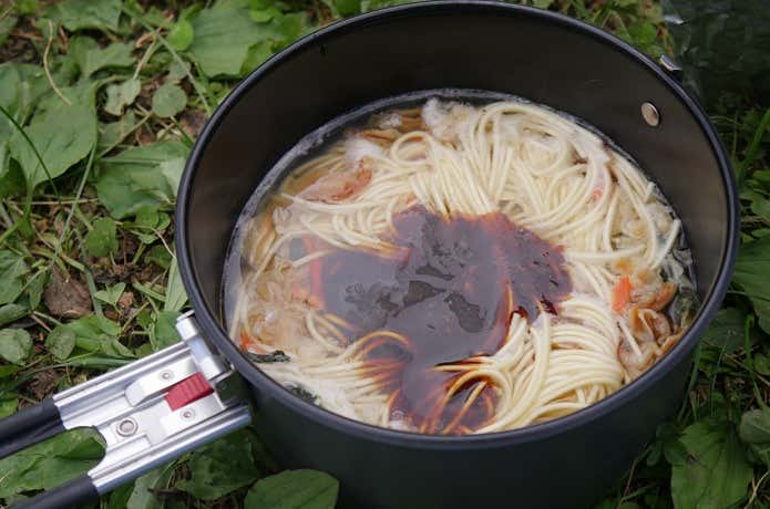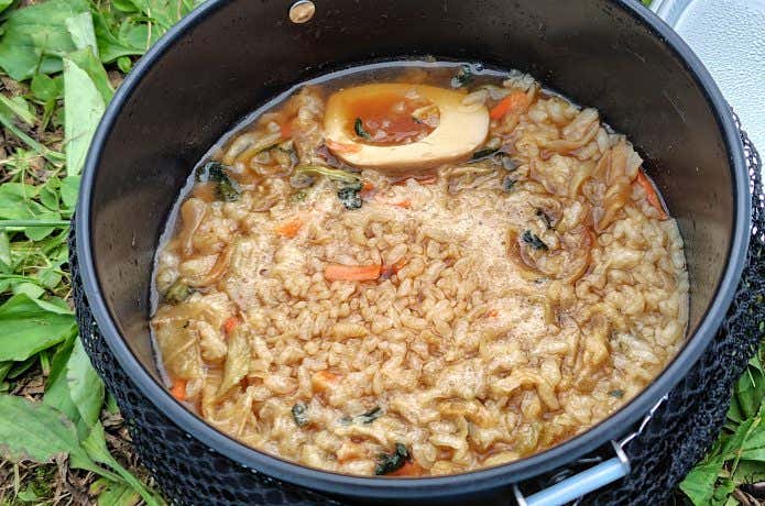 テント泊で重い荷物を背負った際には、残ったスープにフリーズドライのごはんを投入。雑炊にして、さらにお腹を満たせます。
