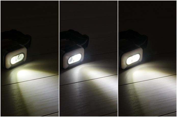 そして上画像は、左からワイド、スポット、コンビ光を比較したものです。コンビ光は、瞬時の判断が求められる、トレランレースの下りで、効果を感じられそうです。