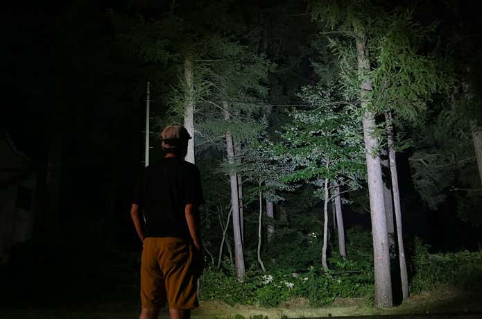 上画像が、その光を撮影したものです。ムラがなく、均一な光で前方を照らし出してくれています。この明るさと見やすさがあれば、ナイトハイクの安全性は高まり、夜の怖さも薄らぐでしょう。