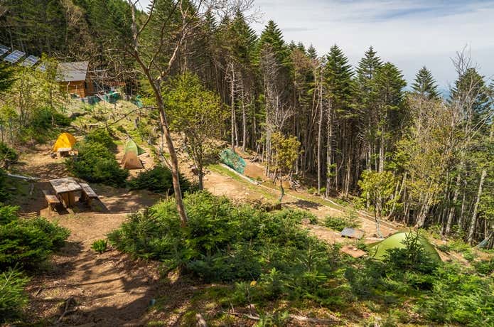 2025年に整備された五十人平野営場でのテント泊も楽しみのひとつ。
