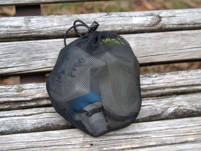 撮影:筆者(メッシュのポーチに浄水器と折りたたみボトルを収納)