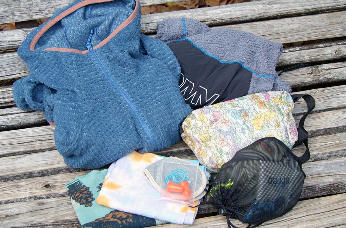 耳栓とアイマスクも欠かせないアイテム。山小屋は、早朝に出発する人や、夜中に星を見に行く人など、意外と出入りが多いもの。また、相部屋で他人のいびきや物音で寝不足になると、身体が回復できず、翌日の行動に支障が出てしまいます。