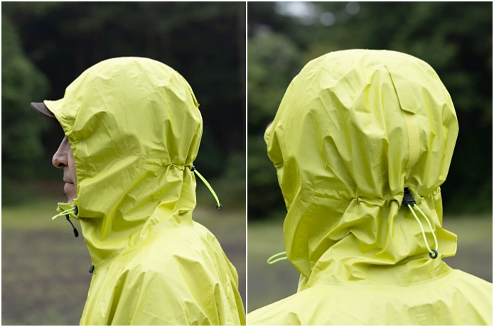 ②レインウエアの機能の要、フードのフィット感は秀逸!