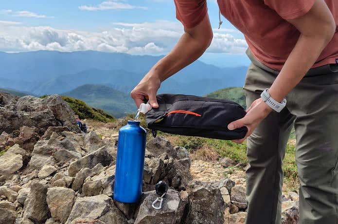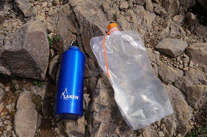 私はアルミボトル同様の円筒形の樹脂製ボトルもデイハイクを中心に使用しています。その重さは1L容量で150g前後と、アルミボトルと変わりません。ちょっと意外だと思いますが、アルミボトルも十分に軽いんです。