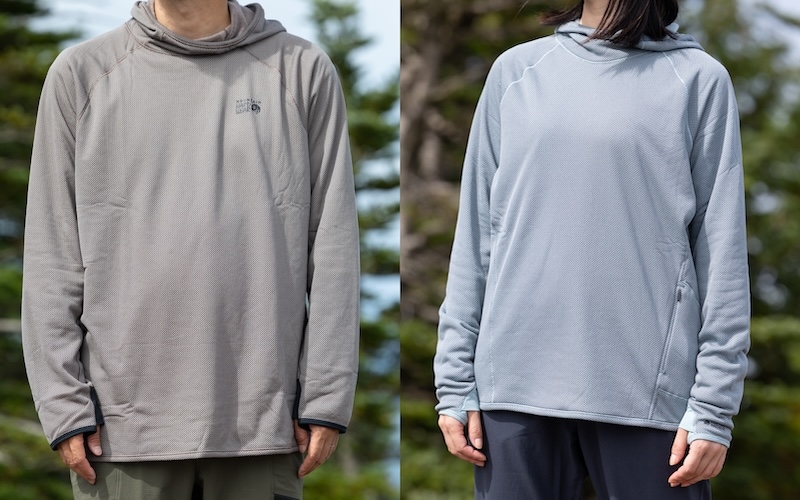 - エアメッシュフーディ:4種の中でもっとも軽量で通気性・速乾性に優れ、暖かさを保つ。一枚のレイヤーが大きな効果を発揮する「③一枚地タイプ」
