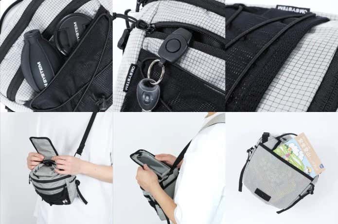 ショルダーストラップを外してバックパックに装着すれば、チェストバッグとしても使用可能です。