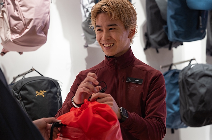 もちろん、フロアスタッフに相談すると内容に合ったアイテムを案内してくれるので、分からないことがあっても安心。自分に合ったスタイルを探す楽しさを感じられるのもアークテリクスならではです。
