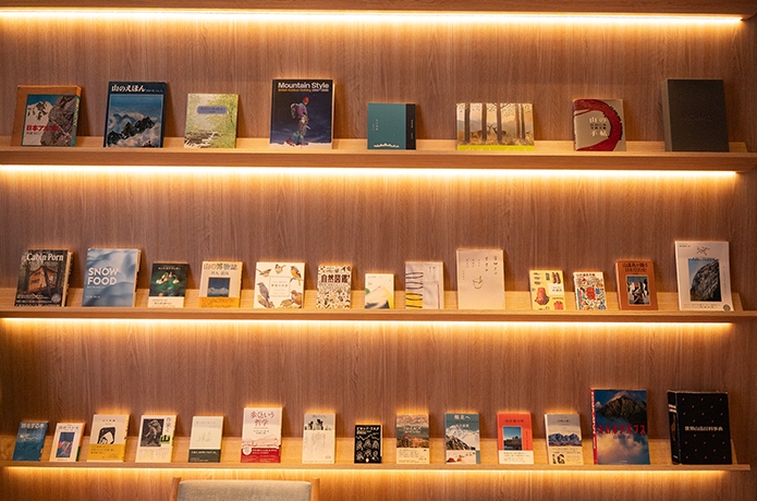 自由に手に取れる本棚には、山行のヒントになる本もずらり。まだ知らない本と出会えるかもしれません。