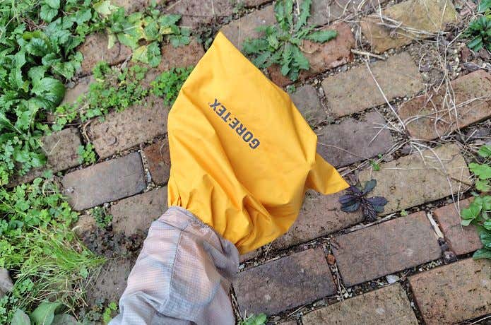 ペラペラの極薄防水透湿素材で、重さ20g強!