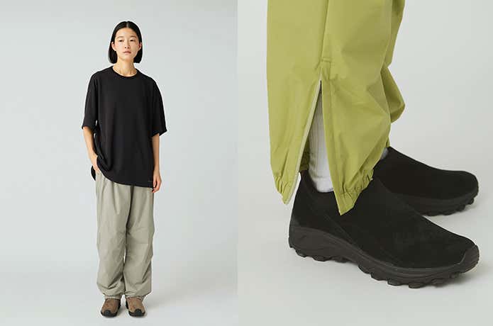 • ウエストと裾はゴムシャーリング仕様で、快適さと着脱のしやすさを両立。適度なリラックス感でスウェットパンツのような使い方もおすすめです。