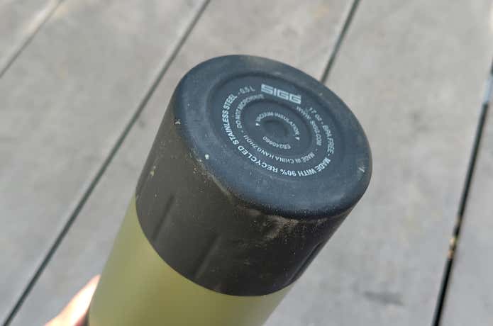 しかしモンベル、サーモスは中栓に断熱仕様を施しているので、シグも同等、それ以上の保温性を実現していることから、断熱仕様になっていると想像します。中栓の中心部にステンレスが採用されているので、そこに真空層をつくって断熱効果を生んでいると思われます。