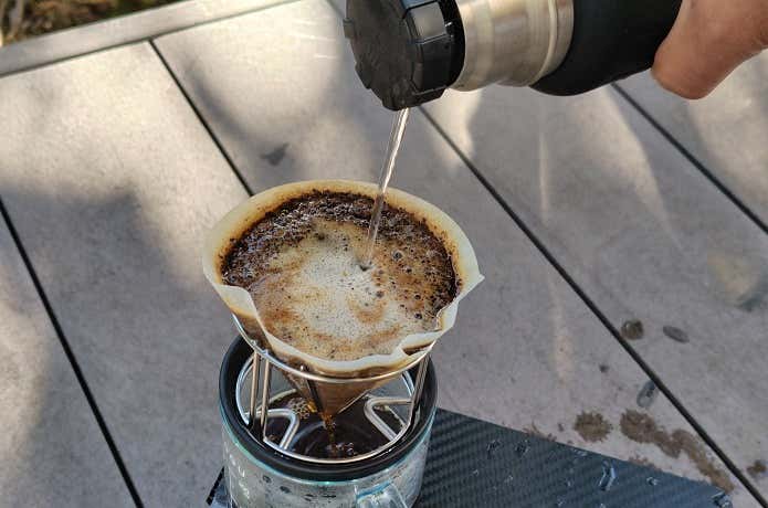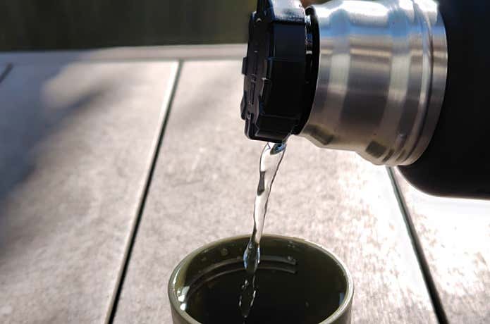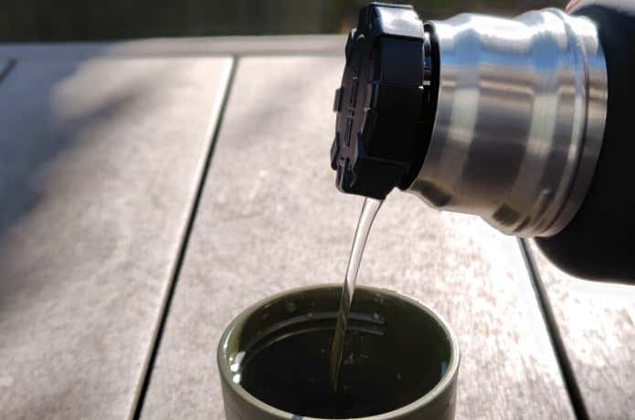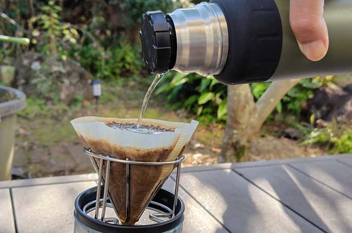 今回のテスト結果を踏まえれば、湯温83℃は、深入りの豆をドリップするのにちょうどよい温度から、やや低めですが、山では贅沢は言えません。もし寒さが厳しくて低い温度になってしまったら、少しの湯をストーブで沸騰させて、ボトルに戻してあげればいいのです。それでも、水から湯沸かしするよりも、短時間、燃料節約で、適温の湯を得られます。
