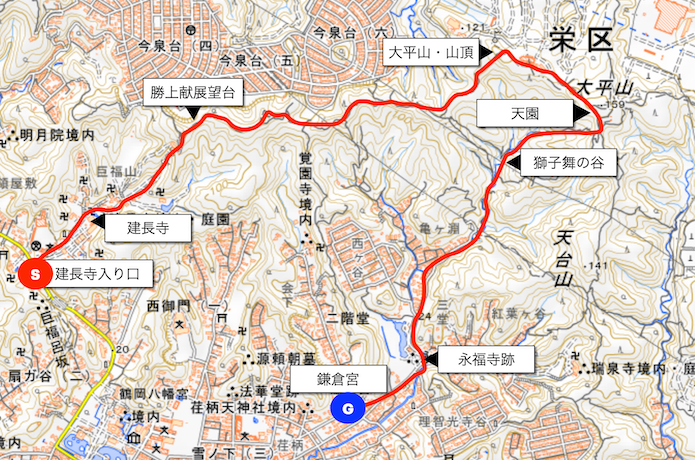 鎌倉といえば「天園ハイキングコース」が定番ですが、今回はモミジの名所である「獅子舞の谷」に足を伸ばすコースをご紹介します。