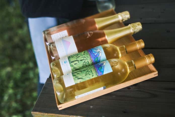 「富士山ワイナリー」のチェックポイントでは、地元産のワインやジュースも楽しめました。