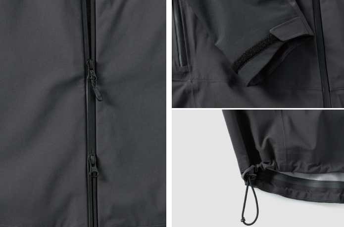 袖はベルクロ、裾はドローコードで調節可能。フロントはダブルジップなので温度調節がしやすい仕様です。