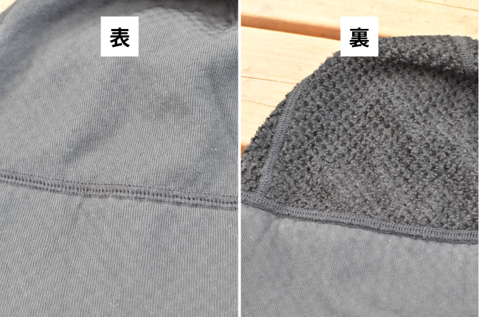 表地は通気性の高いメッシュ、裏地がOctaのふわふわした面となっている「Octa CPCP」構造になっており、保温性と通気性を高いレベルで両立しています。