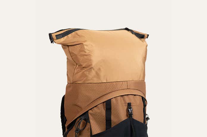 ロールトップ式の開口部は、なんとジッパー付きです。背負い心地のバランスは崩れるかもしれませんが、お土産等で荷物が増えてしまった場合は、ロールをせずに、吹き流しめいっぱいまで、荷物を入れることができます。