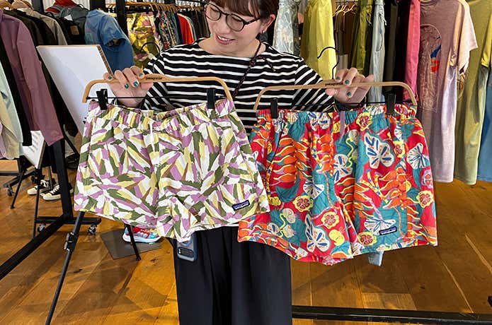 夏の大定番として不動の人気を誇るバギーズ。今季は、ベーシックカラーに加えて、絶妙なトーンの新色や柄モデルがラインナップ。山のグリーンや岩のブラウンにも自然になじむ配色は、さすがパタゴニア。