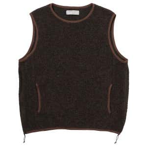 やわらかな起毛感が特徴的なウール混パイルモッサー素材のベスト。ニット素材は通気性が高く、汗を積極的に吸収・放出してくれるので快適な状態をキープします。